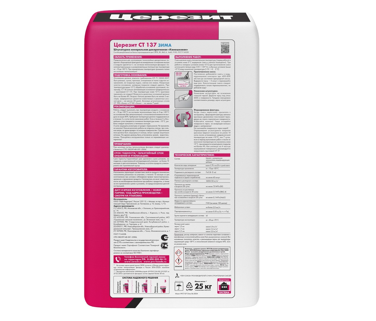 Штукатурка СТ 137/25 кг минеральная "камешковая" 1.5 мм под окраску - влагостойкая и морозостойкая штукатурка на основе цемента, минеральных заполнителей и полимерных модификаторов . Подходит для применения внутри и снаружи зданий. Штукатурка предназначена для выполнения декоративного тонкослойного покрытия на бетонных основаниях, традиционных штукатурках, гипсовых основаниях, плитах ДСП, гипсокартоне и так далее. Может также служить в качестве декоративно-защитного слоя в легких штукатурных системах утепления наружных стен зданий при использовании в качестве утеплителя как минераловатных, так и пенополистирольных плит.
