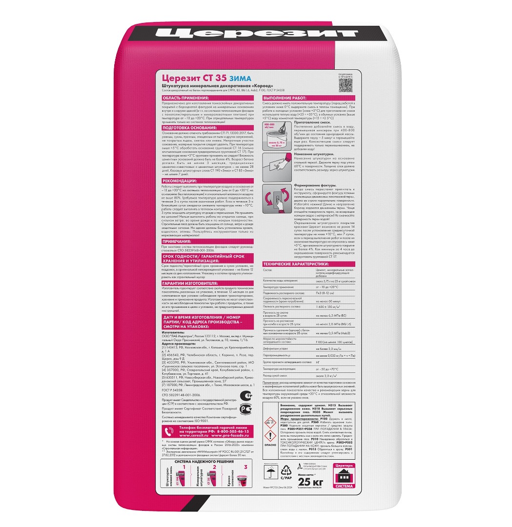 Описание товара: "Штукатурка Ceresit СТ 35 "короед" 2,5 мм под окраску Зима (25 кг)"