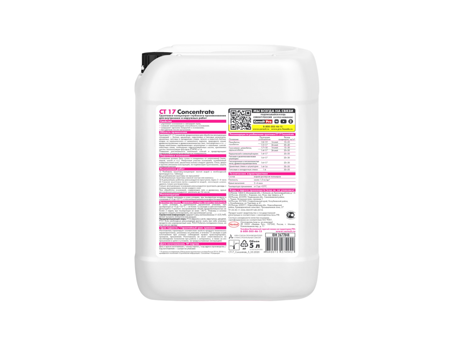 Описание товара: "Грунтовка-концентрат Ceresit СТ 17 Concentrate (10 л)"