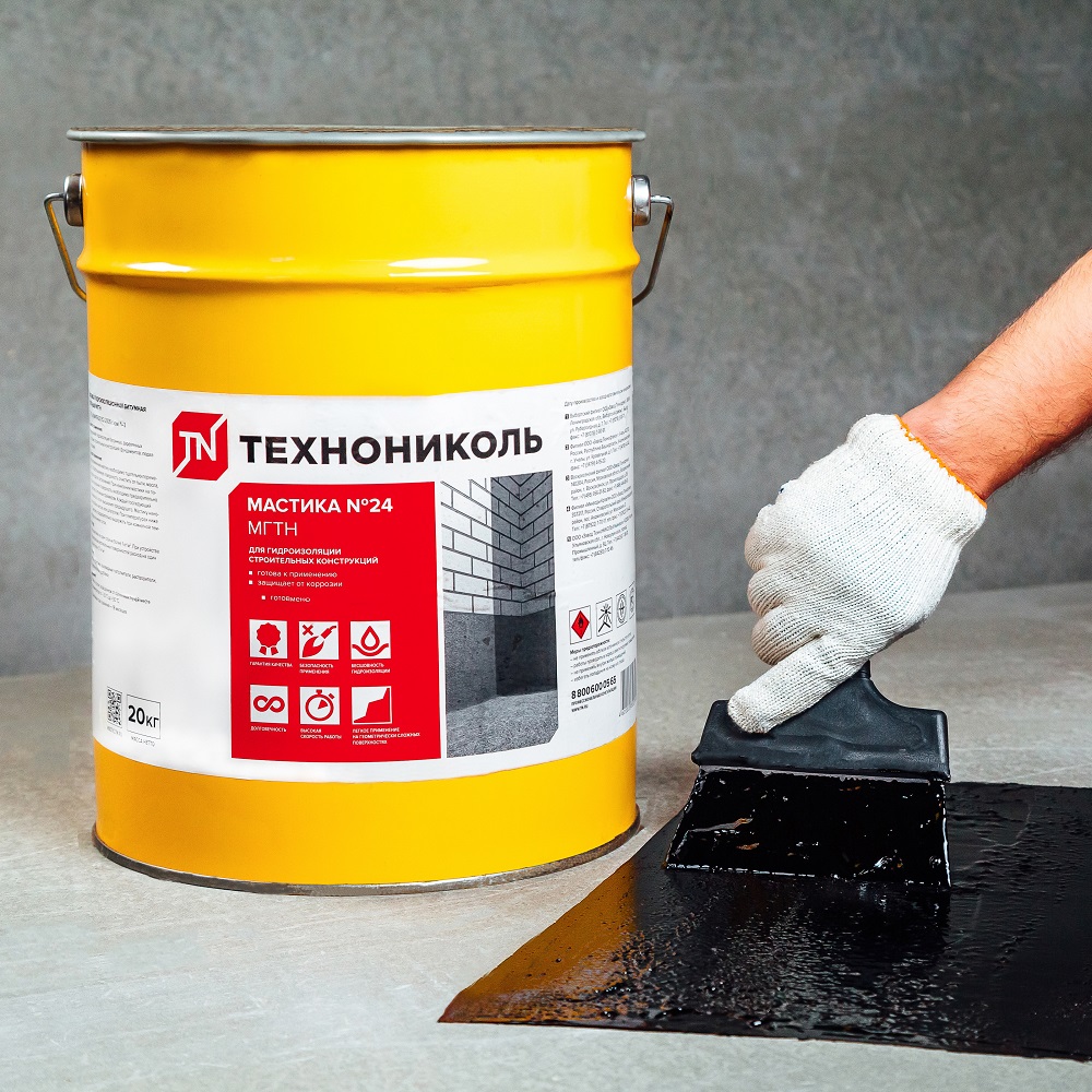 Мастика Технониколь №24 (МГТН) гидроизоляционная — это надёжное средство для защиты фундаментов, подвалов, свай и других строительных конструкций, которые находятся под землёй и контактируют с влагой.
