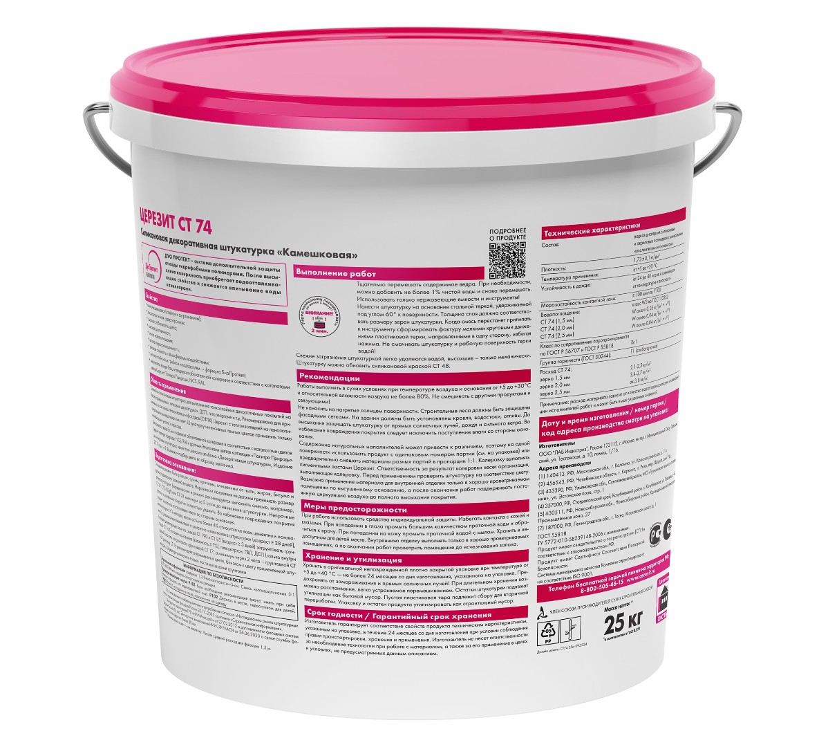Описание товара: "Штукатурка Ceresit силиконовая СТ 74 2 мм "камешковая", база (25 кг)"