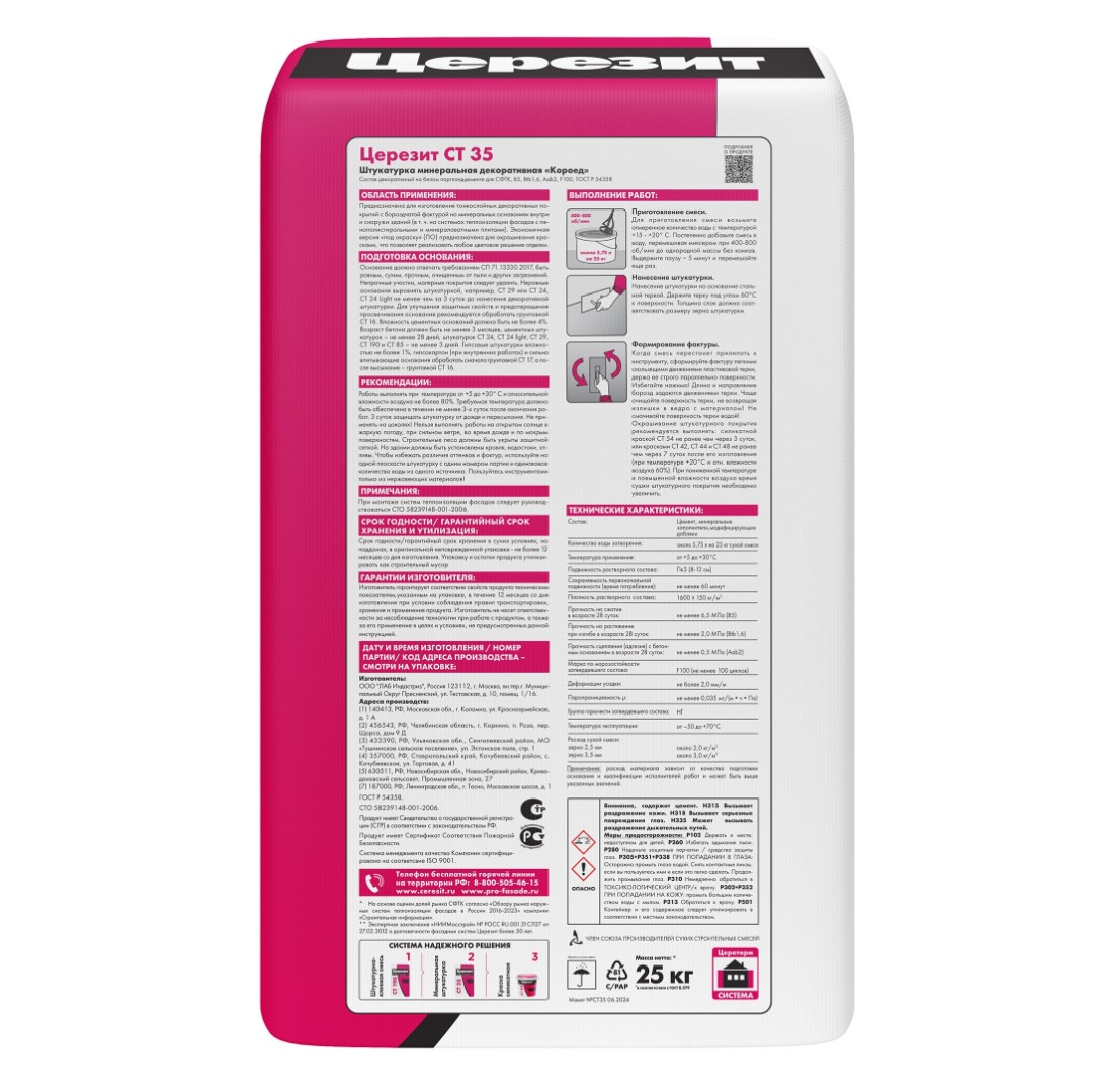 Описание товара: "Штукатурка Ceresit СТ 35 "короед" 2,5 мм под окраску (25 кг)"