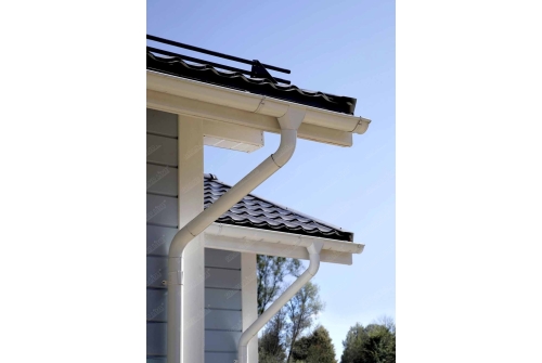 - Является универсальной, т.е. может монтироваться, как с правого, так и с левого торца водосточной системы. Цвет системы по каталогу RAL не регламентируется.